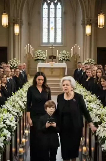 At my husband’s funeral, his mother said, “At least he died before living with her shame any longer.” Relatives nodded. My eight-year-old son stood up, holding his dad’s phone. “Grandma,” he asked, “should I show everyone what Dad recorded about you last week?” Her face went white.