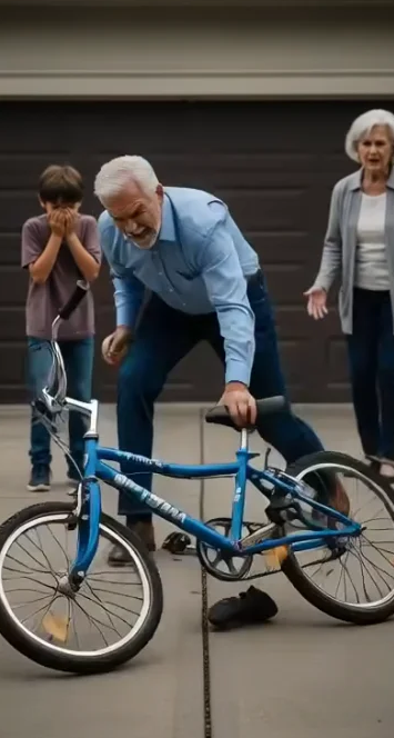 “Dad,” he choked out, his voice wet and trembling. “Grandpa smashed my bike. He smashed it.”