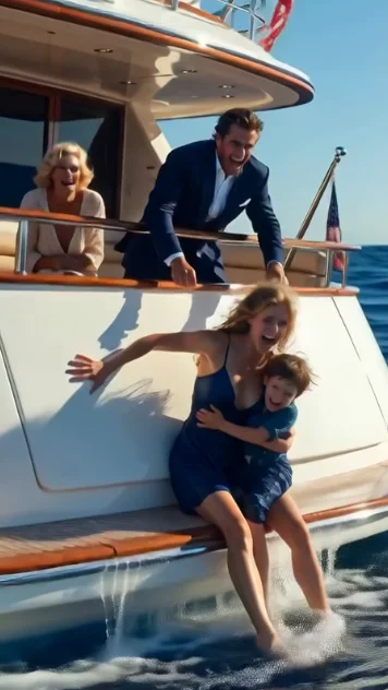 On our private yacht, twenty miles off the coast of Boston, my five-year-old son Lucas and I were suddenly pushed from behind. I stumbled, my hip slamming against the railing, and spun around just in time to see the faces of the people I loved most in the world twisted into masks of cold calculation.