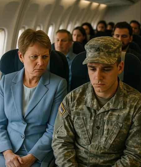 In the airplane cabin, the usual silence reigned. Some passengers dozed off, others looked out the window. Next to a woman in her fifties sat a young soldier. His uniform was neat, but his gaze — empty, tired. He stared at the floor, and it seemed his thoughts were far away, somewhere amid smoke, screams, and fire.