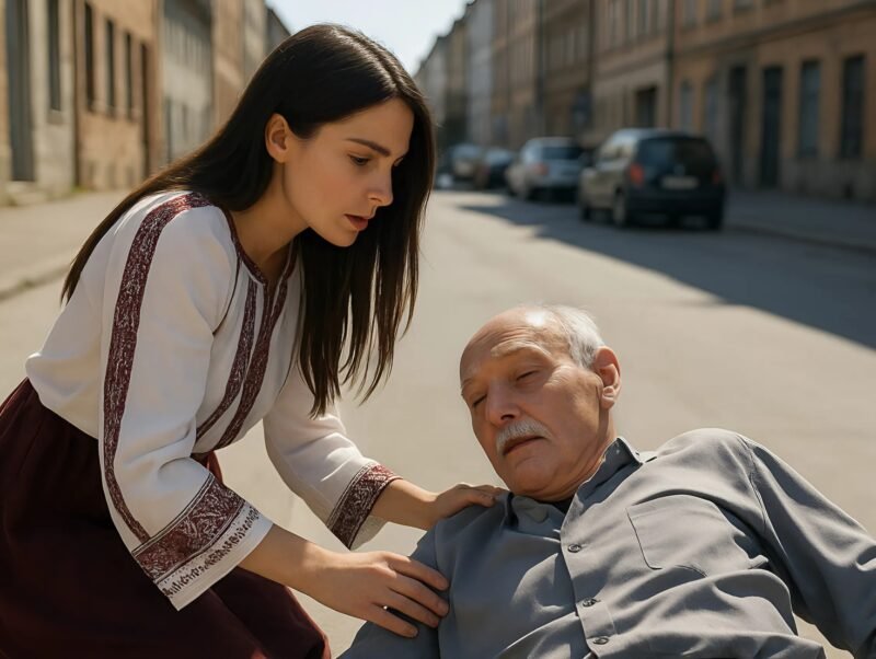 She had nearly reached the intersection when she heard a cry and the sound of cars screeching. On the other side of the street, an elderly man suddenly staggered, clutched his chest, and slowly collapsed onto the asphalt. Drivers were honking, someone shouted from a window, and passersby hurried by, looking away, as if hoping that if they didn’t acknowledge the emergency, it would simply disappear.