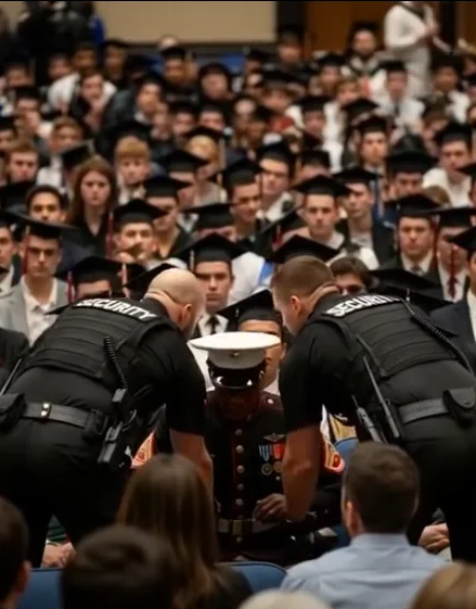 Tyran was near the center of the graduating class. He had seen the two guards walking toward his father from the minute the anthem ended. He couldn’t hear what was said, but the body language told him enough. He saw the guards standing too close, saw his father calmly staying seated, and then he saw a man stand up, a tall guy in a dark coat. And somehow, Tyran knew that wasn’t just a parent. That man knew his father. Then another man stood, and another. It wasn’t loud, but it was like the temperature in the room shifted.